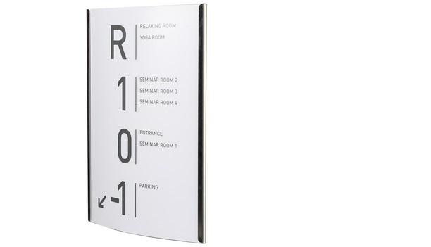 Bendo: licht gebogen RVS/INOX bewegwijzeringsysteem
