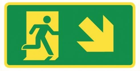 Nooduitgang (ISO 7010) - fotoluminescerend - rechts omlaag 200x400mm