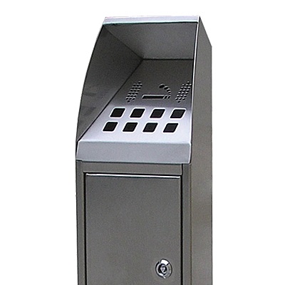 Grote vrijstaande peukenvanger van RVS/INOX die men op de ondergrond kan vastschroeven. De voet heeft een afmeting van 24x19 cm en de hoogte is 100 cm.