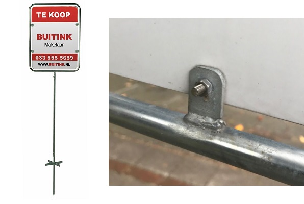 Eenvoudig aluminium makelaarsbord / immobord, elektrolytisch verzink, bestaande uit 3 delen - bordhouder, middenbuis en grondpen - biedt een veelzijdige en duurzame manier om een boodschap te presenteren. Eenvoudig in elkaar te schuiven en vast te schroeven, is dit bord perfect voor wisselende advertenties en informatie. Met een variabele lengte van 140 tot 200 cm kun je de grootte van het bord aanpassen aan jouw specifieke behoeften. Het ruime reclamevlak van 48x65 cm kan staand worden gebruikt om een boodschap opvallend en duidelijk weer te geven. De buitenmaat van de geprinte 3 mm dikke dibond plaat is 48x65 cm en een reclamevlak van 43x60 cm. Print is enkelzijdig. Bestand aanleveren conform bijgaande template (zie PDF). Voor dubbelzijdige print of print voorzien van een beschermende coating is de prijs op aanvraag.