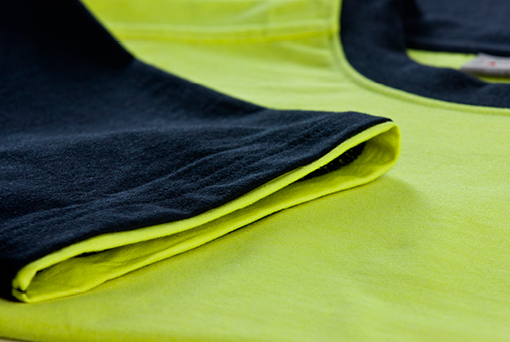 Fluoriserend veiligheids T-shirt, 70% polyester/30% katoen, 190 gr/m2, in een comfortabele single jerseykwaliteit, met contrasterende kraag en 3-M reflectietape, horizontaal gedsealed