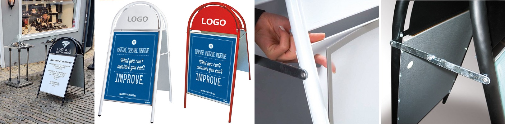 Nostalgisch buiten stoepbord Heimwee met een geintegreerd topbord. Het frame is 25 mm doorsnede in kleur gespoten en is dubbelzijdig voorzien van een ontspiegelend folie met magneetrand waar men de poster achter zet. Topbord kan beletterd worden of voorzien worden van een sticker. Exlusief poster en belettering; indien gewenst kunnen wij deze tegen meerprijs leveren. Verkrijgbaar in de kleuren zwart, wit en rood. Bij bestelling gewenste kleur opgeven. Overige kleuren alleen bij aantallen en daarbij is de prijs op aanvraag.Aanbiedingsprijs tot 1 oktober a.s.